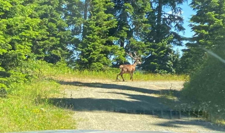 İhsangazi’de araçla ormanlık alanda seyir halinde olan orman işçileri, kızıl geyik gördü. Aracı fark ederek koşmaya başlayan kızıl geyik, işçiler tarafından cep telefonu ile görüntülendi. Bir süre ormandaki yolda koşan kızıl geyik daha sonra ağaçların arasına girerek gözden kayboldu.