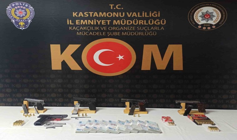 Edinilen bilgiye göre, İl Emniyet Müdürlüğü Kaçakçılık ve Organize Suçlarla Mücadele (KOM) Şube Müdürlüğü ekiplerinin Kastamonu’da silah ticareti ve haksız kazanç elde edilmesinin engellenmesine yönelik çalışmaları devam ediyor. Bu çerçevede daha öncesinden tespiti yapılan ve fiziki takibe alınan A.Ç. isimli şahsın farklı zamanlarda farklı şahıslarla silah alışverişi yaptığı tespit edildi. Bunun üzerine yapılan çalışmalar sonucu gerçekleştirilen operasyonda; 5 adet ruhsatsız tabanca, 112 adet tabanca fişeği, silah ticaretine konu olduğu değerlendirilen 100 bin TL ele geçirildi.