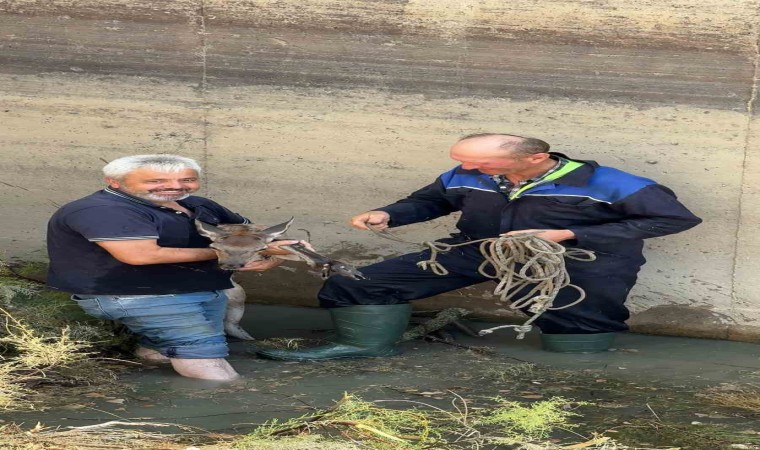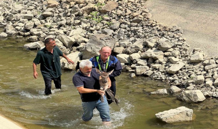 Edinilen bilgiye göre, Hanönü ilçesine bağlı Gelinbükü Mahallesi’nde hidroelektrik santraline su taşıyan beton kanala bir karacanın düştüğü ihbar edildi. İhbarın ardından Hanönü Belediyesi ekipleri, kanalın etrafının tellerle çevrili olması nedeniyle karacanın çıkamadığını tespit etti. Belediye ekiplerince içerisinde az miktarda su bulunan kanaldaki karaca, yaklaşık 1,5 saatlik çalışmanın ardından yakalanarak kanaldan çıkartıldı. Belediye ekiplerince karnı doyurulan ve bakımları yapılan karaca, Doğa Koruma ve Milli Parklar Kastamonu İl Şube Müdürlüğü ekiplerine teslim edildi.
