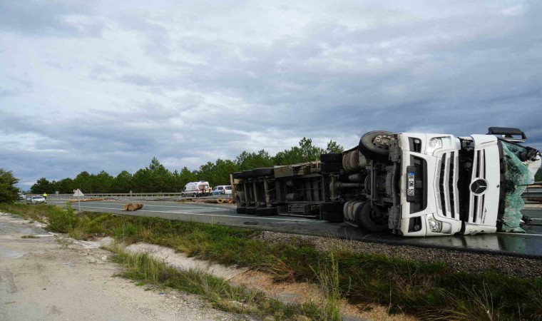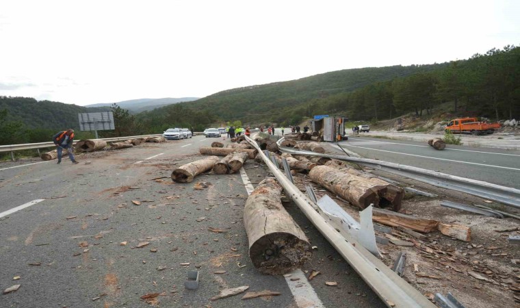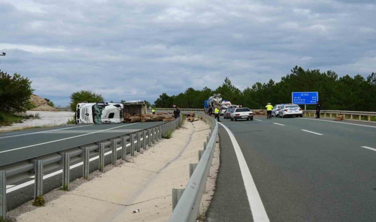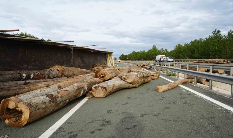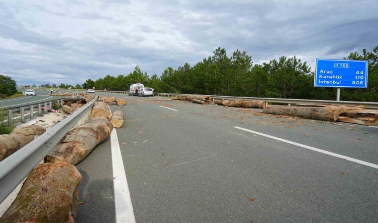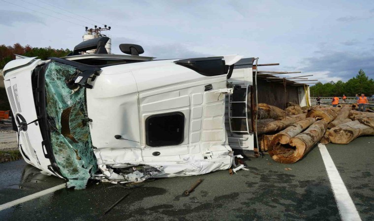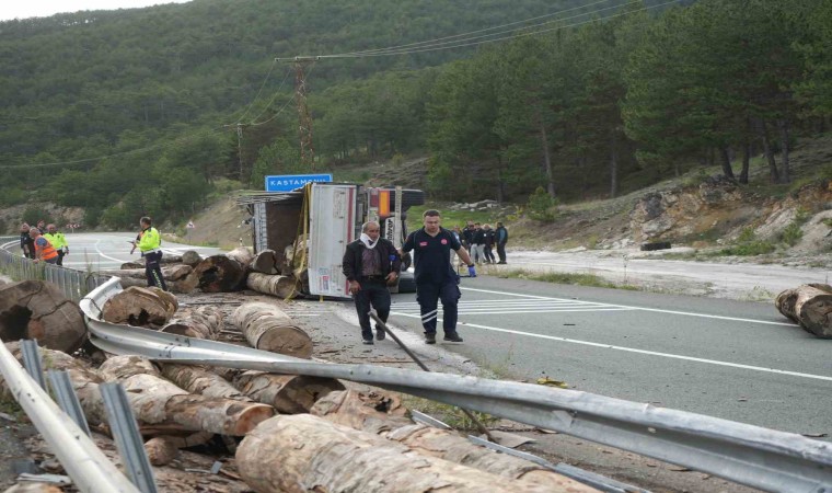 İstanbul-Kastamonu karayolunda tomruk yüklü tır, virajı alamayarak devrildi. Kazada tır sürücüsü yaralanırken, tırda bulunan tomruklar ise etrafa saçıldı.