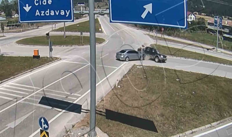 İlk kazada, Cide istikametinde hızlı bir şekilde seyir halinde olan otomobil, aynı hızla yolun karşısına geçmek isteyen pikaba çarptığı görülüyor. Çarpmanın etkisi ile pikap metrelerce sürüklenerek durabiliyor.