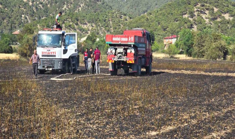 Kastamonu’nun Hanönü ilçesinde çıkan yangında üç samanlık ve ekin tarlası kül oldu.