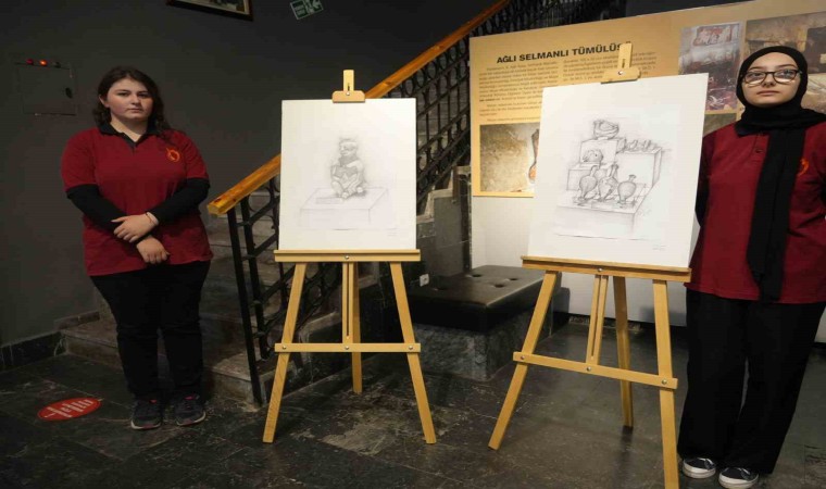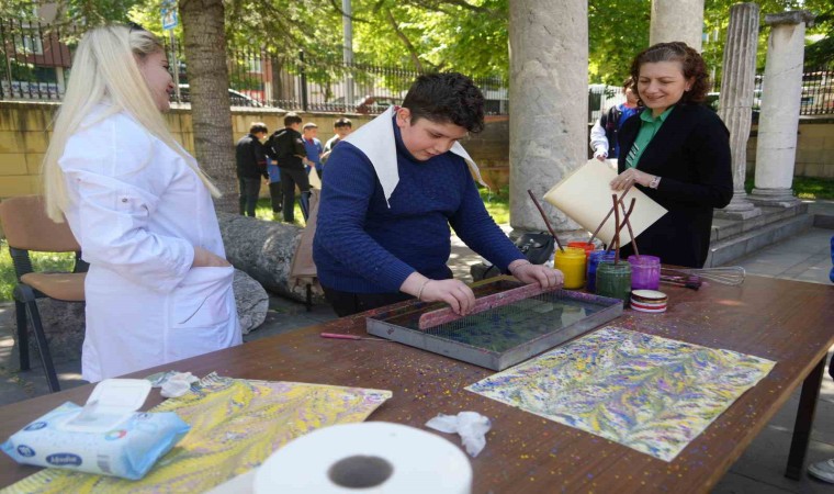 Uluslararası Müzeler Günü sebebiyle Arkeoloji Müzesine gelen öğrenciler, burada coğrafi işaretle taş baskısı ve ebru yaptı.