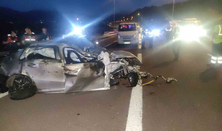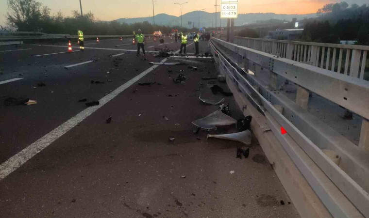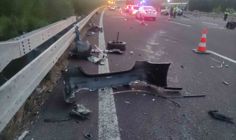 Kaza nedeniyle Otoyolda Kılıç kavşağı savaş alanına döndü. Çarpışan iki otomobilin de motorları yerinden koparak yaklaşık 60 metrelik alana savruldu. Kaza sonrasında bariyerlerde sıkışan otomobil lastiği ise kazanın şiddetini gözler önüne serdi.