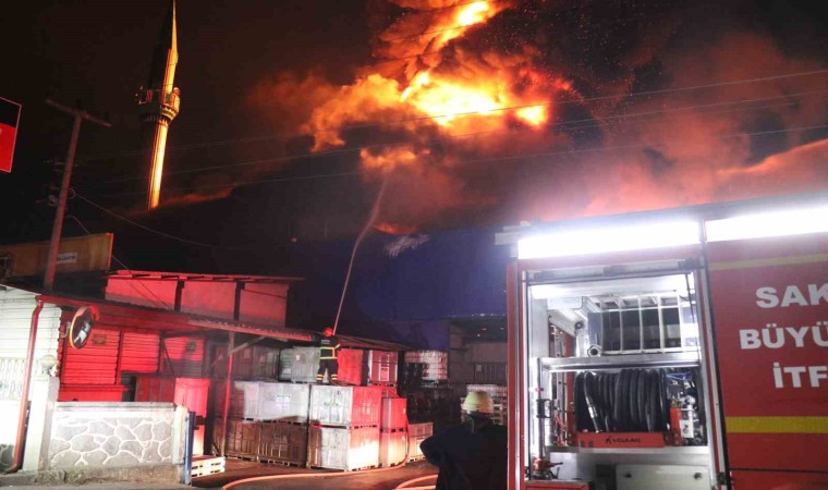 Sakarya’nın Serdivan ilçesinde kauçuk fabrikasında çıkan yangın adeta geceyi aydınlattı. Ev, camii ve bitişikteki dükkana sıçrayan yangını söndürmek için ekipler seferber oldu.