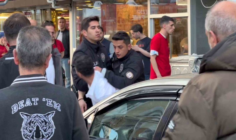 Samsun’da kavga eden şahıslardan biri yola savrulunca, hareket eden araçların altında ezilmekten sürücülerin ani freniyle kurtuldu.