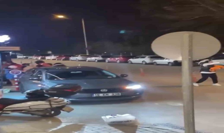 Olay, merkez Osmangazi ilçesi Demirtaş Mahallesi’nde bir alışveriş merkezi önünde meydana geldi. İddiaya göre yol üzerinde karşılaşan taraflar yol verme yüzünden sözlü tartışmaya başladı. İki grup arasında çıkan tartışma kısa sürede büyüyerek yerini kavgaya bırakınca, tekme ve yumruklar havada uçuştu. O anlar vatandaşların amatör kamerasına yansırken, ihbar üzerine gelen polis ekipleri tarafları güçlükle ayırdı.