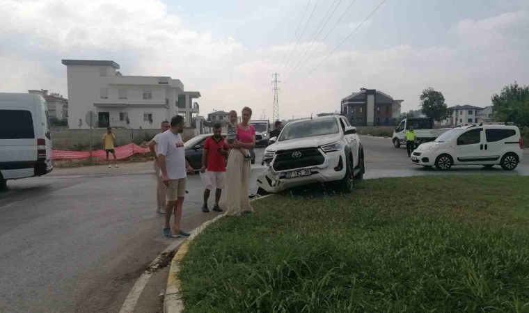 Antalya’nın Manavgat ilçesinde kamyonet ile otomobili çarpıştığı kaza güvenlik kamerasına yansıdı. Kazada yaralanan olmadı.