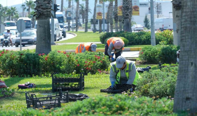 Bodrum Belediyesi, ana yol üzeri kavşaklar ve refüj alanlarını mevsimlik çiçeklerle donatıyor.