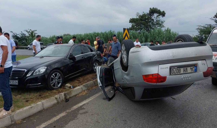 Kaza, Samsun’un Çarşamba ilçesi Samsun-Ordu karayolu Çınarlık mevkisi Costal Kavşağı’nda meydana geldi. Edinilen bilgiye göre, Mehmet İpek’in kullandığı 34 VH 8070 plakalı otomobil, Samsun’dan Çarşamba istikametine seyir halindeyken direksiyon hakimiyetini kaybederek refüjdeki bordür taşlarına çarptı. Takla atan otomobil önünde seyir eden ve kavşakta dönüş yapmak isteyen Ayhan Tokgöz yönetimindeki B HA 5534 Alman plakalı otomobile sol yan kısmından çarptı. Kazada yabancı plakalı araç savrularak refüje çıkarken, 34 plakalı otomobil ise takla atıp ters döndü. Kazada yaralanan Mutlu Şahin ve Belgin Tokgöz ambulansla Gazi Devlet Hastanesine kaldırıldı.
