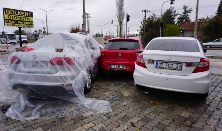 Burdur’un Gölhisar ilçesinde kavşağa kontrolsüz giren otomobil, bir araçla çarpıştıktan oto galeriye daldı. Güvenlik kamerasına yansıyan kazada toplamda 5 araç hurdaya dönerken, 3 kişi de yaralandı.