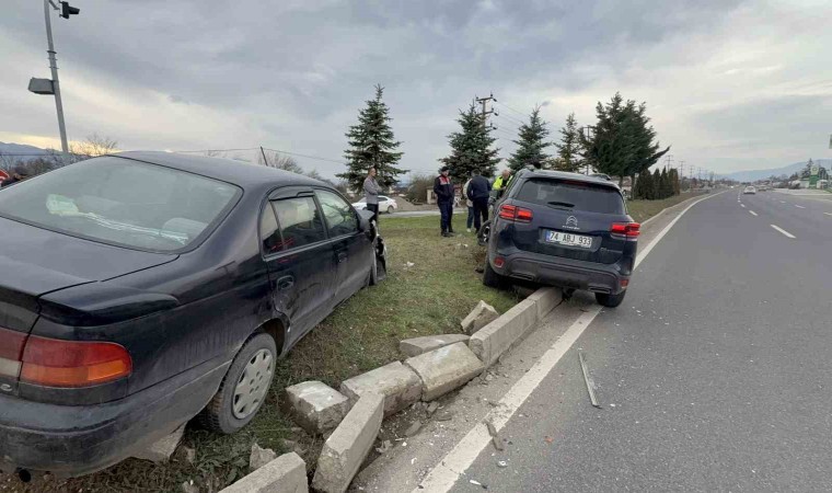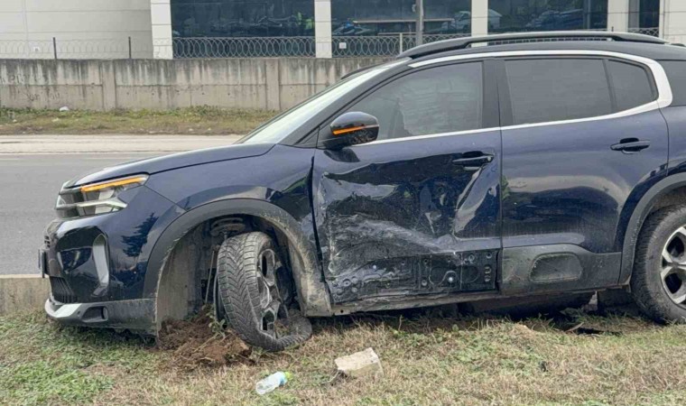 Düzce’de cip ile otomobilin çarpıştığı kazada 2 kişi yaralanırken, araçlar refüje çıkarak durabildi.