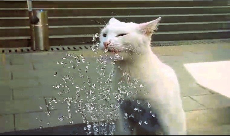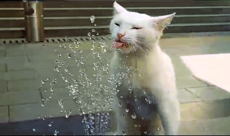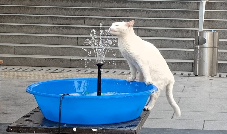 Denizli’de mevsim normallerinin üzerinde devam eden hava sıcaklıkları insanlar kadar hayvanları da olumsuz etkiledi. Kavurucu sıcaktan bunalan bir kedinin, iş yeri önündeki fıskiyeden suç içmesi ilgi odağı oldu.