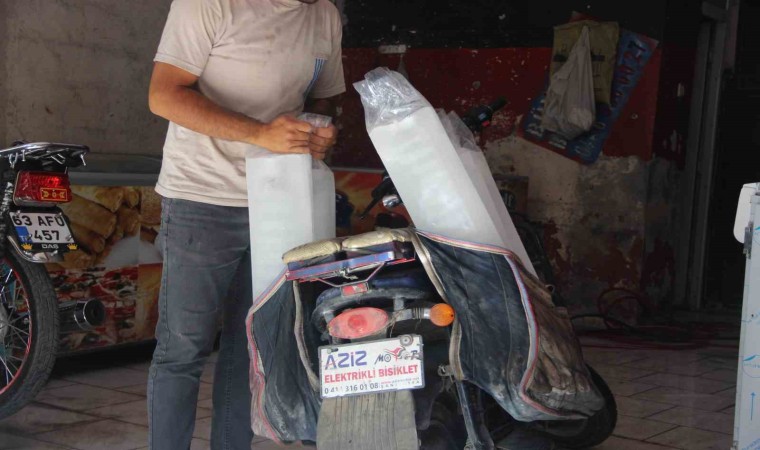 Buz üreticisi Abdulkadir Demir, kurduğu soğuk hava deposunda ürettiği kalıp buzları satarak ailesinin geçimini sağlıyor. Demir, “Biz burada buz üretimi yapıyoruz. Günlük yaklaşık 5 ton buz üretiyoruz. Üretilen 5 tonu da satıyoruz. Havalar ısındığından dolayı buz satışlarımız daha bir rağbet görmeye başladı. Hava sıcak olduğundan dolayı buzdolapları olsun, ondan sonra çeşitli soğutma cihazları yetersiz geliyor. Yetersiz olduğu zamanda işletme sahipleri bizden buz talep ediyor. Buzu, su için kullanan var, şerbet için kullanan var, hamur için kullanan var. Fırıncılar hamur için kullanıyor. Şerbetçiler limonata için kullanıyor. Birçok işlemde buz kullanılıyor. Buz fiyatlarımız, büyük kalıp buz 35 TL, poşetli buz 25 TL ve yarım buzu da 15 TL şeklinde satıyoruz” dedi.