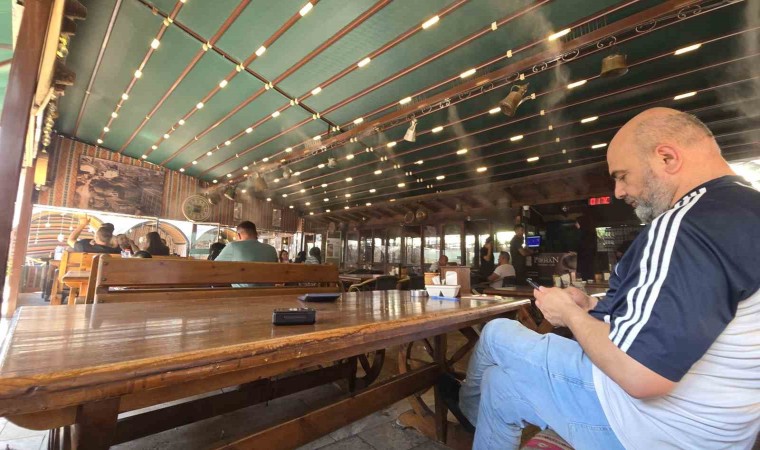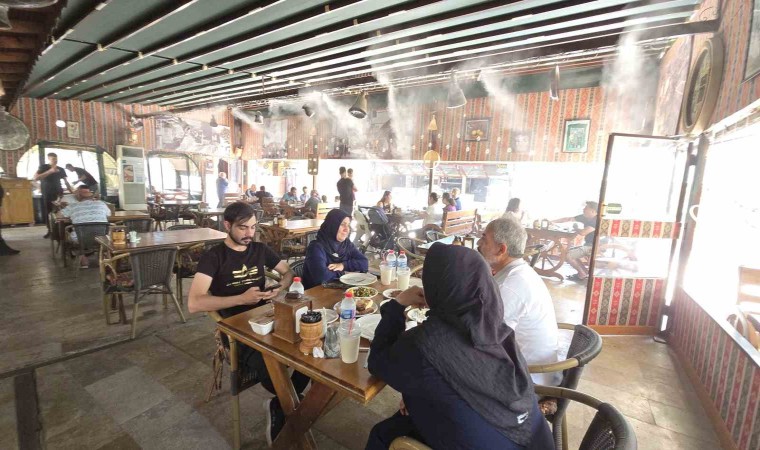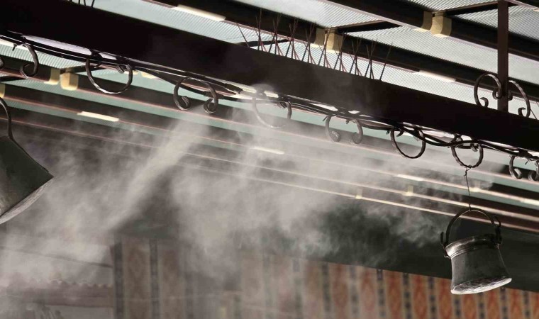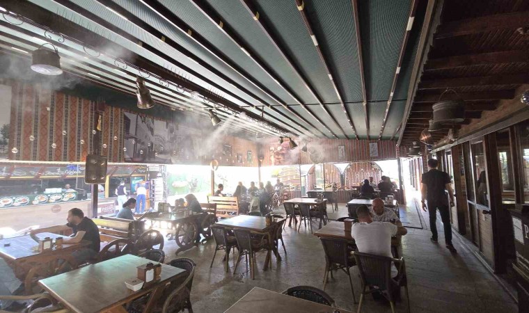 Tokat’ta bir restoran, sıcak yaz günlerinde müşterilerine ferah bir ortam sunmak için su buharı sistemini hayata geçirdi.