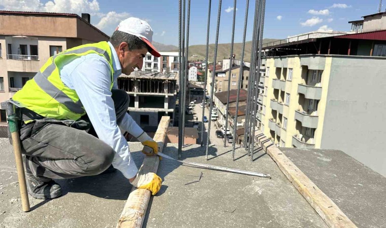 Hakkari’nin Yüksekova ilçesinde havaların ısınmasıyla birlikte başlayan inşaat sezonu, 30 derece sıcaklığa rağmen devam ediyor.