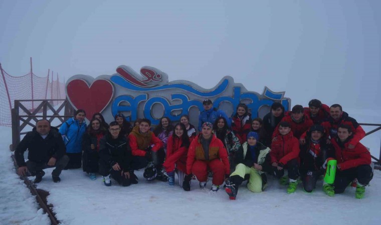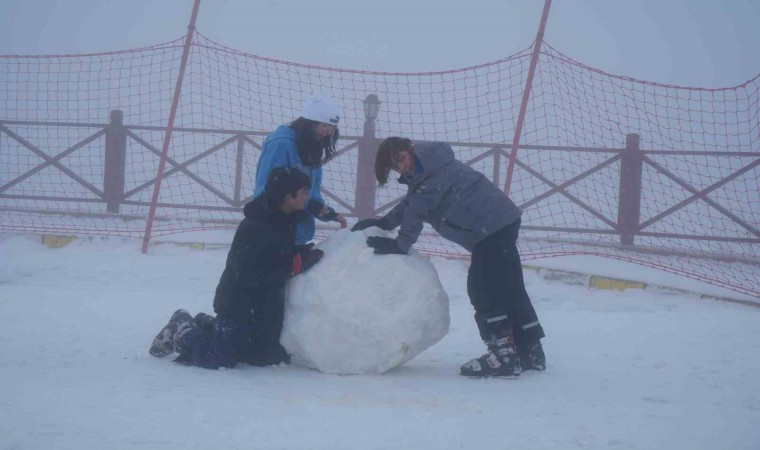 Kayak yarışları için Ergan Dağı Kayak Merkezine Türkiye’nin değişik illerinden gelen bazı çocuklar ise kardan adam yaparak karın tadını çıkardılar.