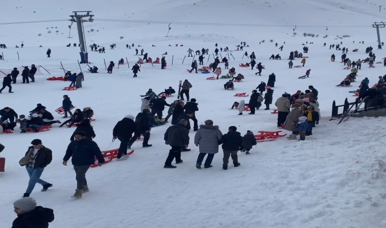 Van’da kış mevsiminin gecikmesi ve yağış azlığı nedeniyle uzun süredir kapalı bulunan Abalı Kayak Merkezi hafta sonu yüzlerce kayak severi ağırladı.