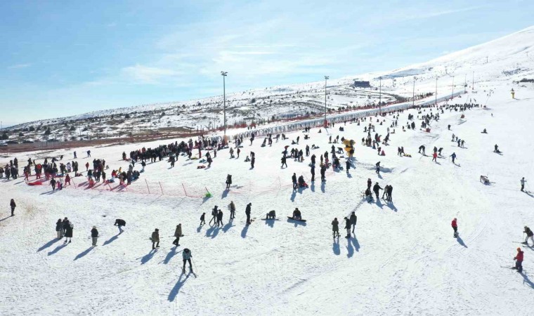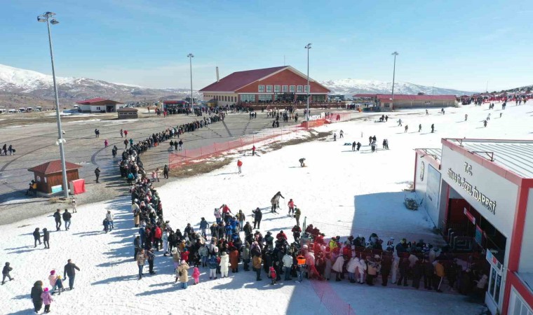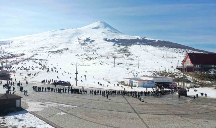 Sivas’ta kayakseverlerin Yıldızdağı’na akın etmesiyle gişe önlerinde uzun kuyruklar oluştu.