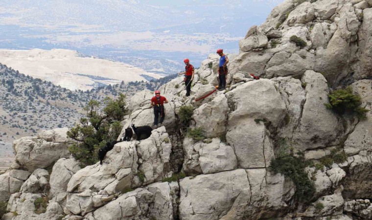 Isparta’da kayalık alanda mahsur kalan keçiler, ekiplerin çalışması sonucu kurtarılarak sahibine teslim edildi.