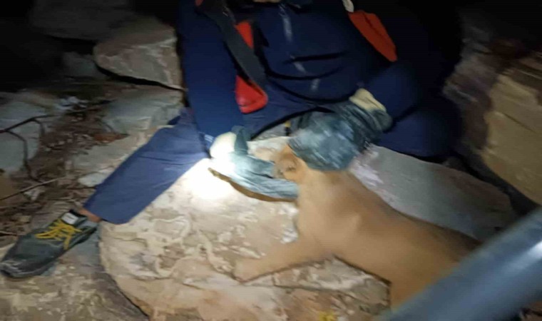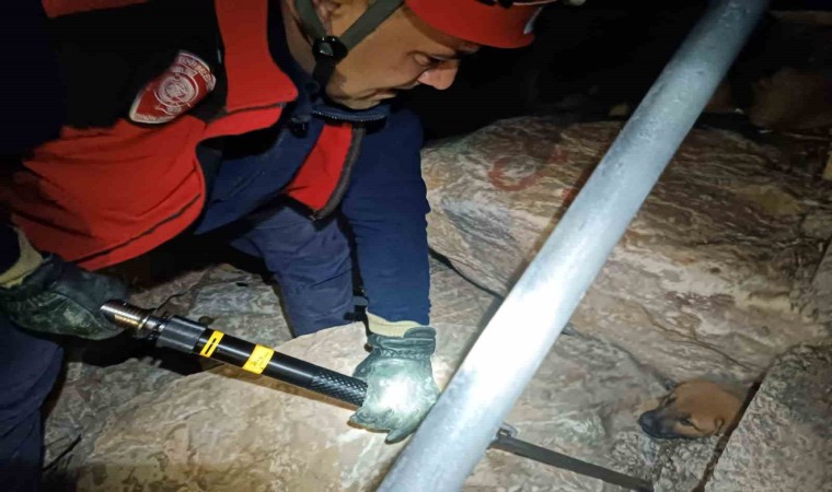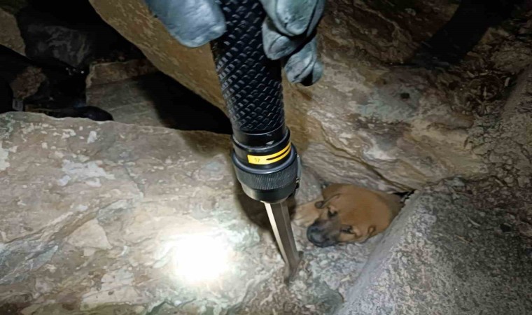 Balıkesir’in Edremit ilçesinde kayalıklara sıkışan yavru köpek itfaiye tarafında yapılan çalışma ile kurtarıldı.