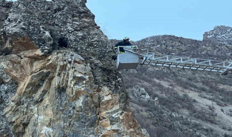 Edinilen bilgiye göre, Kaçit Mahallesi’nde Osman Cintan’a ait 4 keçi, saat 16.00 sıralarında otlarken kayalıklarda mahsur kaldı. Cintan, keçilerini mahsur kaldığı yerden indiremeyince Çatak İtfaiye Grup Amirliği ekiplerinden yardım istedi. Kayalıkların ortasında mahsur kalan 4 keçi, itfaiye ekipleri tarafından sepetli merdivenle bulundukları alandan tek tek alınarak sahibine teslim edildi. Keçilerine kavuşan Osman Cintan, itfaiye ekiplerine teşekkür etti.