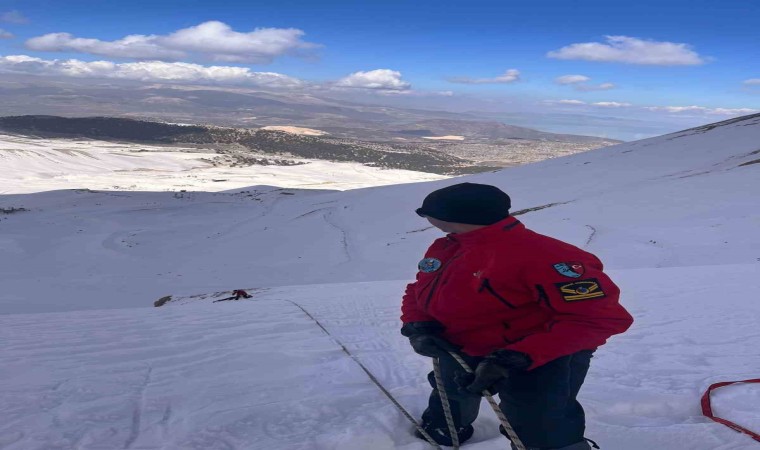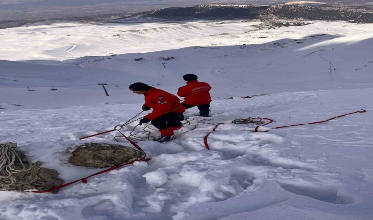 Isparta’da snowboard yaptığı esnada kayalıklarda mahsur kalan doktor, JAK ekiplerince kar motosikleti ile kurtarıldı.