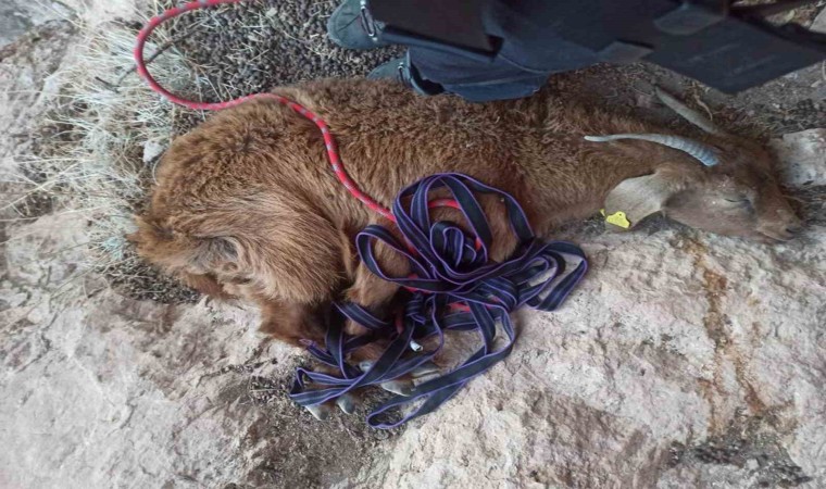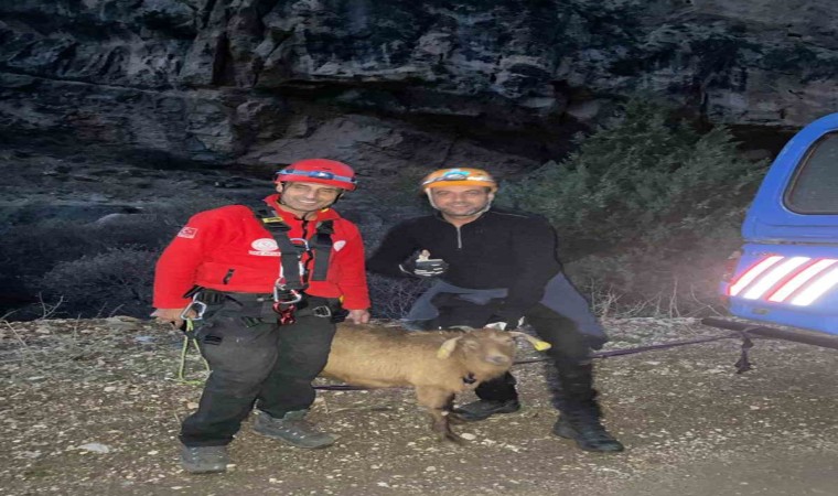 Ekipler, 4 saatlik çalışma sonucu kayalıkta mahsur kalan keçiyi kurtararak sahibine teslim etti.