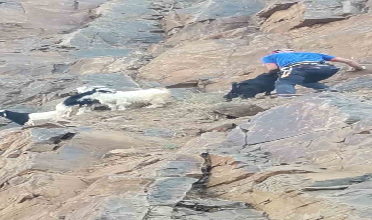 Bingöl’ün Solhan ilçesinde kayalıklarda mahsur kalan 7 oğlağı, AFAD ekipleri kurtardı.