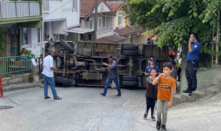 Olay, İzmit ilçesi Tavşantepe Mahallesi Güray Sokak üzerinde meydana geldi. Edinilen bilgiye göre, 41 AHU 542 Isuzu marka kamyon sürücüsünün yokuş yukarı çıkarken sol manevra yapamaması üzerine araç stop etti. El frenin de kopması üzerine kamyon kayarak önce duvara çarptı, sonra yeni alınmış park halindeki 54 AJC 170 plakalı Fiat marka otomobile çarparak devrildi. Devrilen kamyonda bulunan şoför ve 2 yolcu kendi imkanları ile araçtan çıktı. İhbar üzerine olay yerine sağlık, polis, itfaiye ve UMKE ekipleri sevk edildi. Kısa sürede olay yerine gelen sağlık ekipleri, 2 yolcuyu tedbir amacıyla kontrol etti. Yolcular tedaviyi kabul etmedi.
