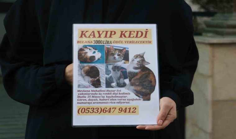 Mevlana Mahallesi Buhara Sokak’ta yaşayan Zeliha Tuna, yaklaşık 4 yıl önce sokakta bulduğu yavru kediyi sahiplendi. Tuna, ‘Mutlu’ adını verdiği kediye 4 yıl adeta çocuğu gibi baktı. ‘Mutlu’ ortadan kaybolurken, Tuna her yerde aramasına rağmen kedisini bir türlü bulamadı. Kedisinden bir haftadır haber alamadığını ve büyük üzüntü yaşadığını belirten Tuna, kedisi ‘Mutlu’yu bulana 3 bin lira ödül vereceğini ifade etti.