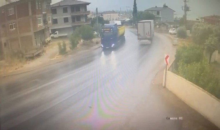 Bursa’da sağanak yağış sebebiyle kayganlaşan yolda yan dönen tır, yolu kapattı. Büyük tehlike atlatılan kazada yaralanan olmazken, tır sürücüsü olay yerinden kaçtı. Kaza anı güvenlik kameralarına yansıdı.