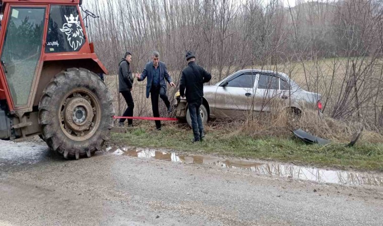 Kaza sabah saatlerinde meydana geldi. Aracıyla seyir halindeki M. K., Çırdak Mahallesi’nde yağışın da etkisiyle direksiyon hâkimiyetini kaybetti. Yol kenarındaki trafik levhasına vuran araç tarlaya uçtu. Sürücü kazadan yara almadan kurtuldu. Kaza olduğunu gören mahalle sakinleri traktör getirerek tarladaki aracı halat yardımıyla çekti.
