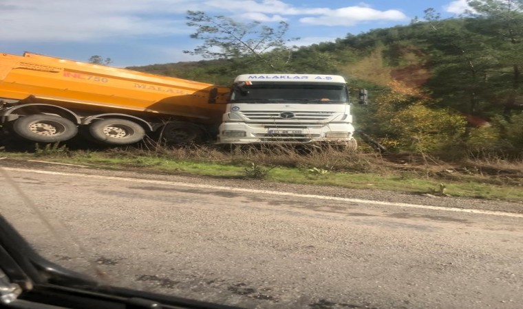 Muğla’nın Milas ilçesinde aşırı yağış dolaysıyla kontrolü kaybolan tır, yoldan çıkarak devrildi. Kazada tır sürücüsü yaralandı.