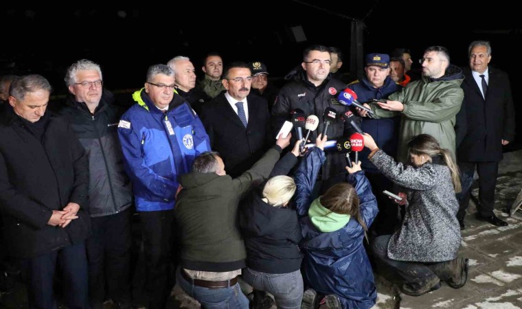 "Bununla birlikte biz karadan ’tarama’ dediğimiz çalışmalarımıza devam ediyoruz. Dün gece hava şartları çok daha kötüydü. Buna rağmen ekiplerimiz az önce saymış olduğumuz AFAD ekiplerimiz, Sahil Güvenliğimiz, Kıyı Emniyetimiz, jandarmamız, polisimiz, Deniz Kuvvetlerine bağlı ekiplerimiz, profesyonel arama kurtarma ekiplerimizle tarama faaliyetlerine aslında ara vermedik. Yani karadan tarama faaliyetlerimiz devam etti. Ancak denize açılmak veyahut havada helikopterin veya uçağın arama kurtarma veya tarama çalışması yapması pek mümkün olmadı. Yalnız gündüz saatlerinde siz de uçağı, helikopteri gördünüz. İHA’lar da bölgeyi tarıyorlar. Hava şartları el verdiği müddetçe arama kurtarma çalışmalarına inşallah tekrardan devam edeceğiz."