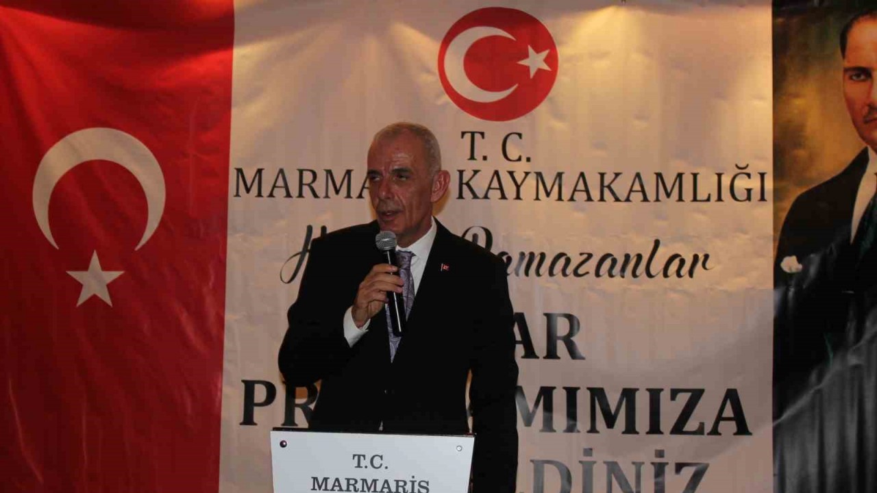 İftar davetinin ardından konuşma yapan Marmaris Kaymakamı Ertuğ Şevket Aksoy "Bu ülkenin önce varlığı için daha sonra bağımsızlığı ve özgürlüğü için canlarını feda eden, bu uğurda gazi olan, sizlerle birlikte olmak şehitlerimizin yakınları ve gazilerimizle birlikte olmak bize büyük bir mutluluk ve onur verdi. Hepimiz çok iyi biliyoruz ki dünyanın en güzel ve en zor coğrafyasında yaşıyoruz. Bu toprakları yurt edinmemiz bu toprakları koruyup kollamak için binlerce yıldır nice şehitler verildi, nice gazilerimiz oldu. Biz bugün bu topraklarda özgür ve bağımsız yaşıyorsak, geleceğe güvenle bakabiliyorsak, bayrağımızın altında çocuklarımız için gelecek nesillerimiz için aydınlık görebiliyorsak, hiç şüphe yok ki bu gerçekliğin en büyük sahibi şehitlerimiz ve gazilerimizdir. Devletimizin eli her zaman şehit yakınları ve gazilerimizin üzerinde. Sizlerin devletimizin himayesi altında daha huzurlu olduğunuzu görmek bizleri sevindiriyor. Elbette bütün dünyayı versek dünyadaki bütün varlıkları versek sizlere olan borcumuzu, şehitlerimize gazilerimize olan borcumuzu ödeyemeyiz. Bizler borcumuzu ancak onların emanetleri olan sizlere ulus olarak bağrımıza basarak sizin yakınlarınızı, çocuklarınızı, akrabalarınızı, kardeşimiz bilerek bu borcumuzu ödemeye çalışıyoruz, çalışacağız" diyerek şehit yakınları ve gaziler ile bir arada olmaktan gurur duyduğunu belirtti.