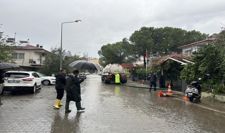 Muğla’nın Ortaca ilçesinde sağanak yağış sonrası bazı sokaklar göle döndü, Kaymakam Kenan Aktaş zarar gören bölgelerde incelemelerde bulundu.