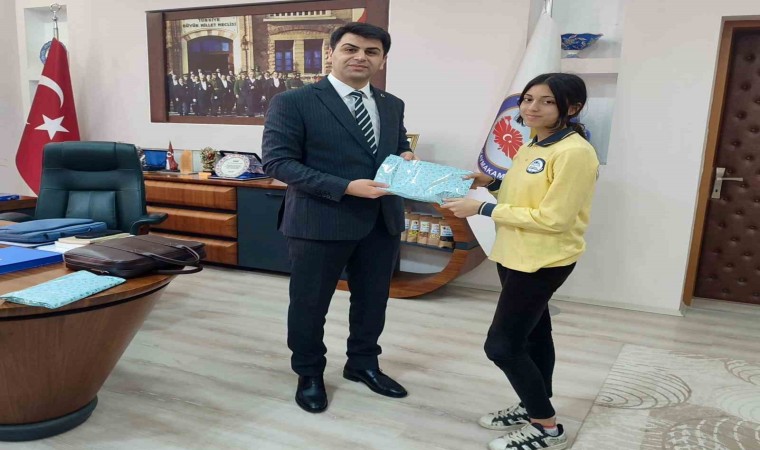 İlçe Milli Eğitim Şube Müdürü Şeyda Bulut, Şehitler Ortaokulu Müdürü Ali Osman Kılıç ve başarılı öğrenciler Kaymakam Muhammet Samet Bahar’ı makamında ziyaret etti. Başarılarından dolayı her iki öğrenciyi tebrik eden Kaymakam Bahar, öğrencilere çeşitli hediyeler verdi.