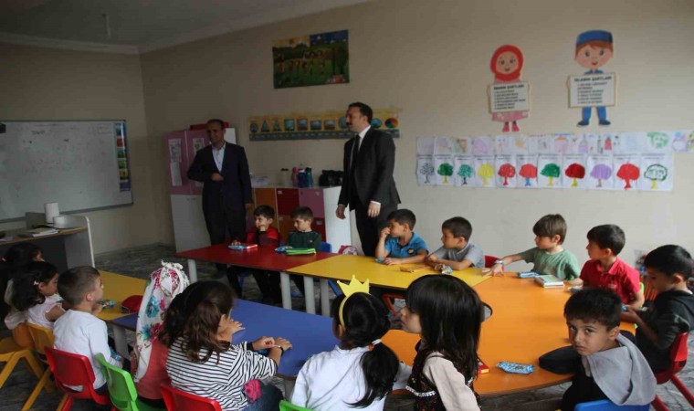 Daha sonra Murat Mahallesi’nde kendi imkânlarıyla Kur’an kursu açan 80 yaşındaki Hacı Refik Aldırmaz’ın yaptırdığı 4-6 yaş Kur’an kursunda eğitim gören minik öğrencileri ziyaret eden Kaymakam Bayram, minikler ile yakından ilgilendi.