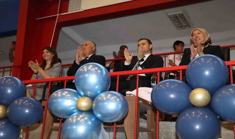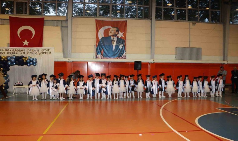 Emirdağ Spor Salonu’nda saygı duruşu ve İstiklal Marşı’nın okunmasıyla başlayan programda, minik öğrenciler mezuniyet töreni etkinliğinde gösterileriyle göz kamaştırdı.