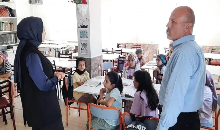 Kaymakam Çanakçıoğlu, Kur’an Kursunda eğitim alan öğrencilerle birlikte derse katıldı. Görevlilerden derslerinin işlenişi, öğrencilerin öğrenme düzeyi ve okuma süreci hakkında bilgi alan Kaymakam Çanakçıoğlu, öğrencilerin Kur’an-ı Kerim okumasını dinledi.