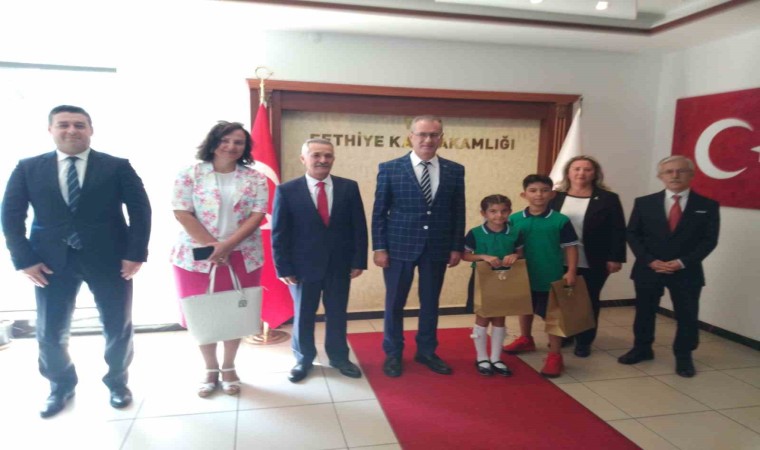Fethiye İlçe Milli Eğitim Müdürü Faruk Kaya, Milli Eğitim Şube Müdürleri Gönül Ertaş, Ekrem Gürhan, Erdinç Kara, Mustafa Karslıoğlu İlkokulu Müdürü Bengü Büyükteke ve öğrenciler ile birlikte Fethiye Kaymakamı İsmail Hakkı Ertaş’a ziyarette bulundu. Kaymakam İsmail Hakkı Ertaş ziyarette yaptığı konuşmada, “Bugün çok güzel bir gün, okullarımız açılıyor. Yeni Eğitim ve Öğretim yılına başlıyoruz. Yeni Eğitim ve Öğretim yılımız Ülkemize, ilçemize hayırlı uğurlu olsun" ifadelerini kullandı.