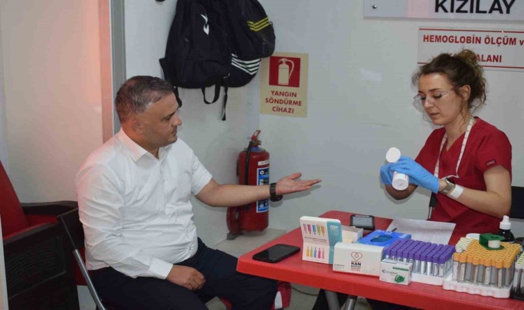 Aydın’ın Bozdoğan ilçesinde kurulan mobil kan bağışı ünitesinde kan bağışında bulunan Bozdoğan Kaymakamı İbrahim Gökçe, kan bağışının önemine dikkat çekti.