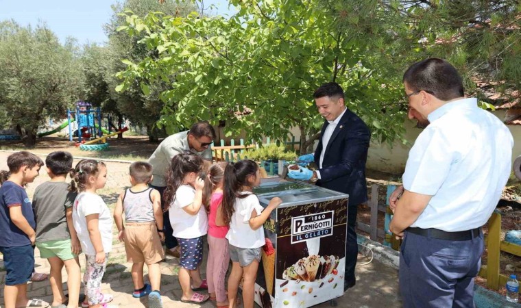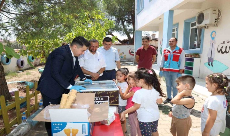 Aydın’ın Karacasu ilçesinde Kaymakam Mehmet Gündoğdu, Sosyal Yardımlaşma ve Dayanışma Vakfı (SYDV) Müdürü Mustafa Geçmez ve İlçe Müftüsü Yunus Erdoğan ile birlikte Cabi Mahallesi’ndeki Yaz Kur’an Kursunu ziyaret etti. Ziyaret sonunda Kaymakam Gündoğdu çocuklara dondurma ikram ederek sevindirdi.