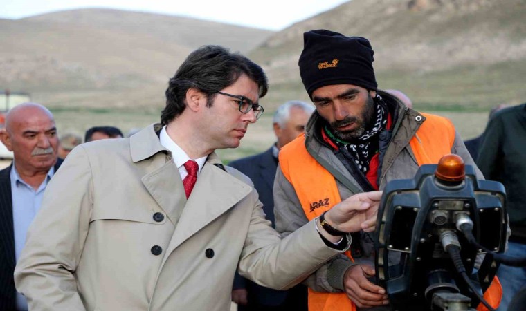 Van’ın Erciş Kaymakamı ve Belediye Başkan Vekili Murat Karaloğlu, parke taşı döşeyip asfalt makinesini kullandı.