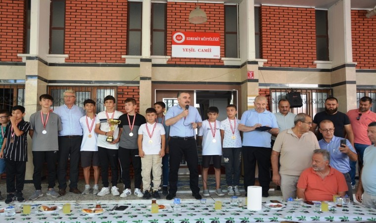 Programda Camiler Arası Futbol Turnuvasında dereceye giren öğrencilere ödülleri verildi. Düzenlenen programa; Edremit Kaymakamı Ahmet Odabaş, İlçe Milli Eğitim Müdürü Yaşar Ciğer, İlçe Müftüsü Sıddık Durmuş ve çok sayıda kursiyer katıldı.