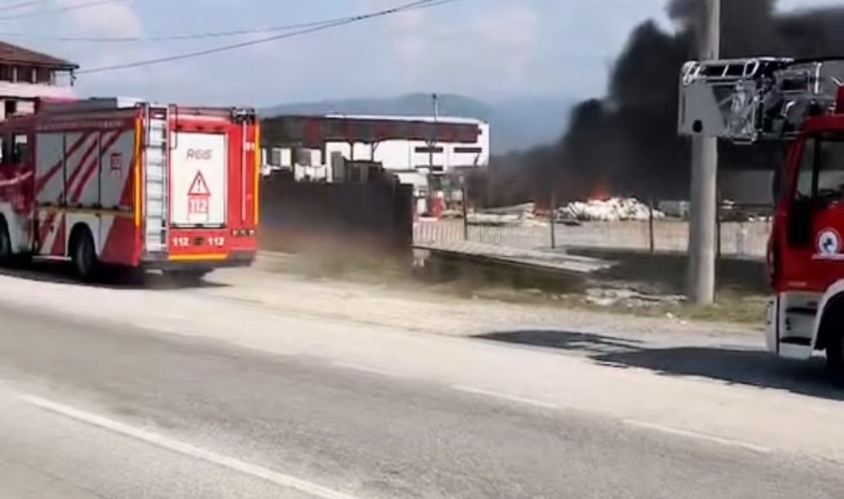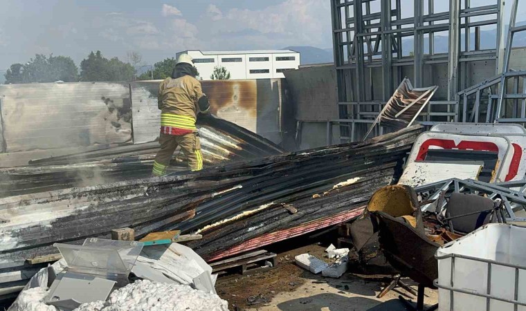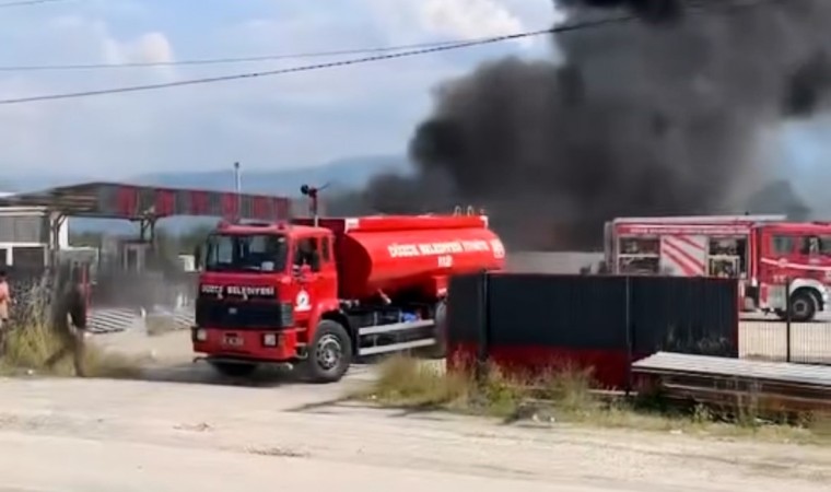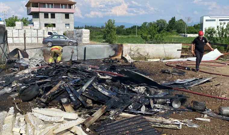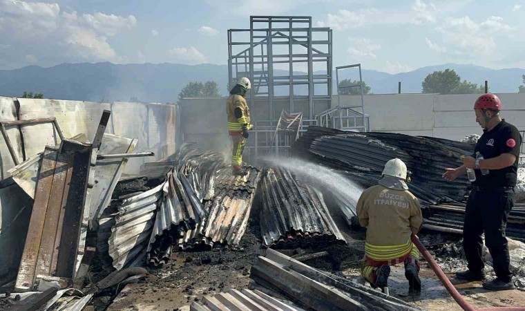Düzce’de kaynak makinesinden çıkan kıvılcımlar, açık hava deposunda bulunan sandviç panelleri yaktı.