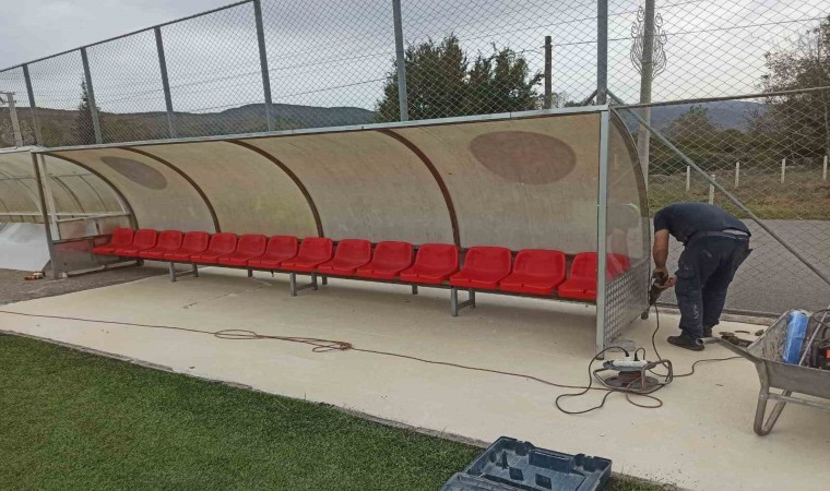 Düzce Gençlik ve Spor İl Müdürlüğü’ne bağlı Kaynaşlı İlçe Stadı’nda protokol ve seyirci koltukları, tribün önü zemin boyası, yedek kulübeleri ve skorboard yapımı tamamlandı.