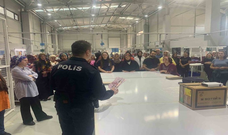 Düzce İl Emniyet Müdürlüğü ekipleri il genelinde çalışmalarına aralıksız bir şekilde devam ediyor. Bu çerçevede Kaynaşlı İlçe Emniyet Müdürlüğü ekipleri Kaynaşlı’da bulunan fabrikalara giderek kadınlarla buluştu. Tüm fabrikaları ziyaret eden polis ekipleri fabrikalarda dolandırıcılık olayları ve KADES konusunda kadınlara bilgilendirmelerde bulundu.