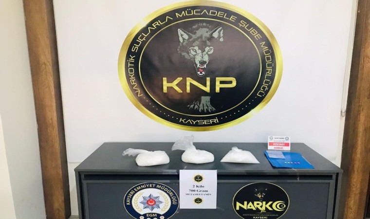 Kayseri İl Emniyet Müdürlüğü Narkotik Suçlarla Mücadele Şube Müdürlüğü ekiplerince yapılan çalışmalarda, bir araçta 2 kilo 700 gram uyuşturucu madde ele geçirildi.